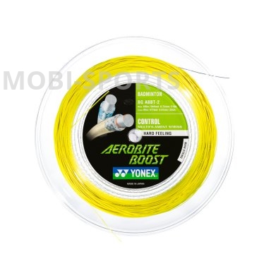 De Yonex AEROBITE BOOST is een snaar uit de categorie HIGH REPULSION. Snaardikte: mains 0.72 mm crosses 0.61mm Eigenschappen: Een hybride multifilament snaar, gemaakt voor maximale controle, zonder dat de repulsie aan kracht verliest. De verticale snaar is gemaakt van Vectran. Dit materiaal is 2 keer zo sterk dan nylon. Gecombineerd met een ultradunne mains, geeft deze hybride combi veel controle. Core (Materiaal binnenin): High-Intensity Nylon Multifilament, waarbij de mains een Super Fiber Vectran versterking hebben. Outer (Materiaal buitenlaag): High Polymer Braided Nylon Fiber, waarbij de mains Oval shapped zijn. Coating: Mains: PolyUrtehane Coating